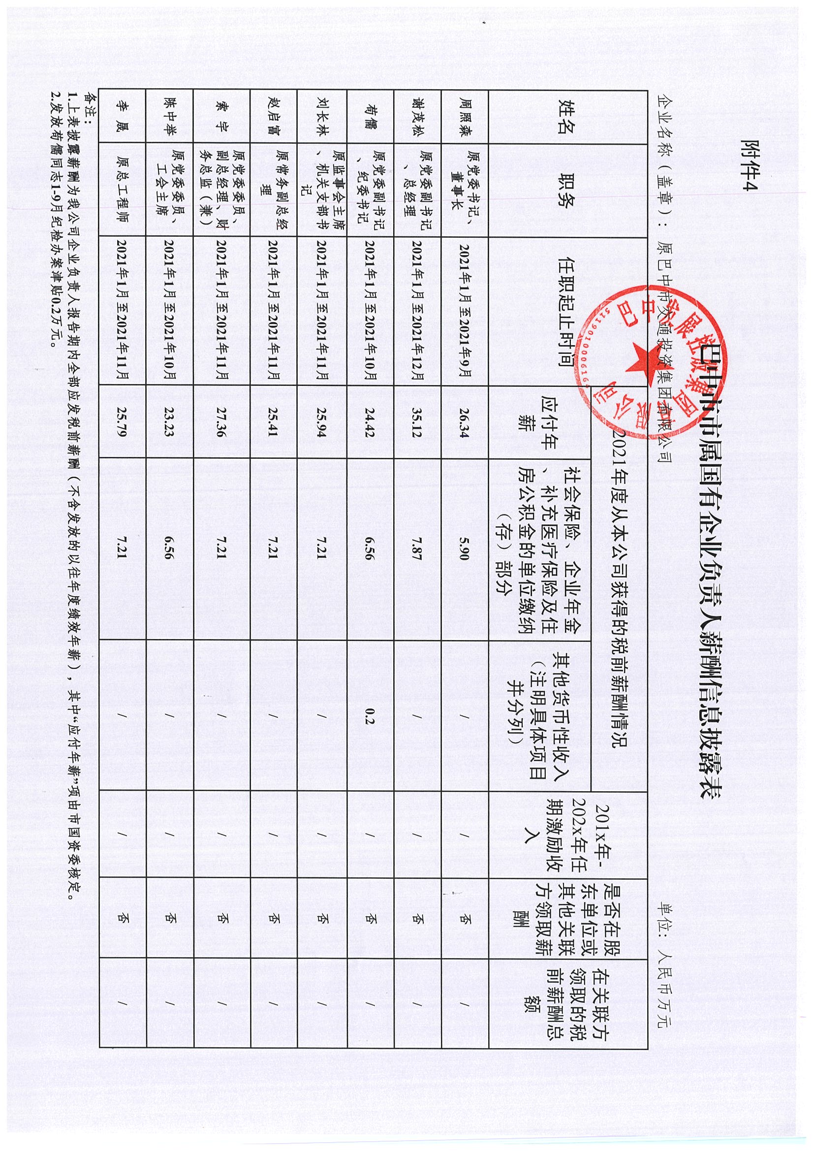 巴中市市屬國有企業(yè)負責(zé)人薪酬信息披露表