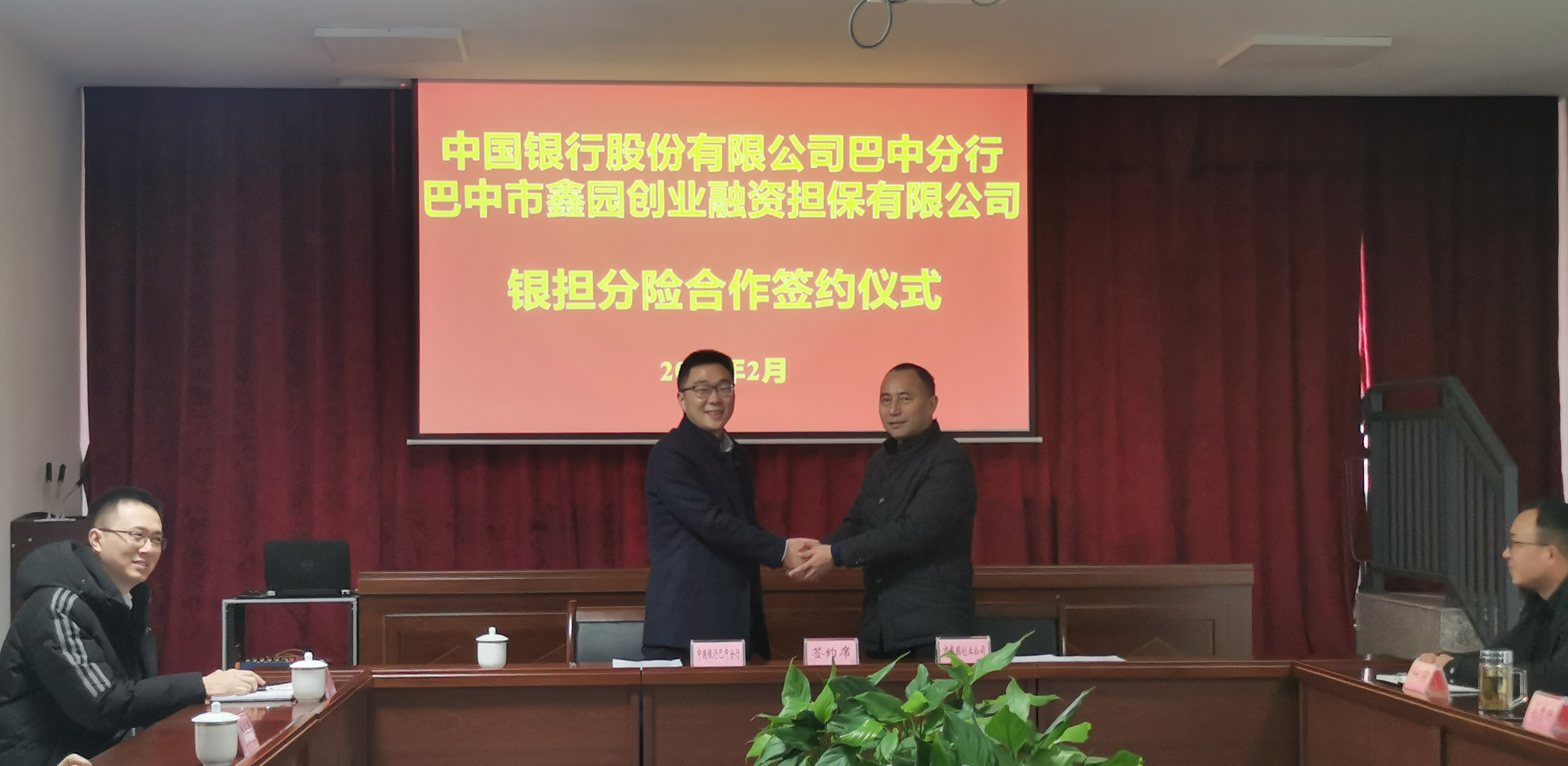 2月3日,中國銀行股份有限公司巴中分行與市鑫園創(chuàng)業(yè)融資擔保有限公司舉行銀擔分險合作簽約儀式。中國銀行巴中分行行長韓存幫與市鑫園創(chuàng)業(yè)融資擔保有限公司董事長吳德映出席簽約儀式,并現場簽訂銀擔分險合作協議。