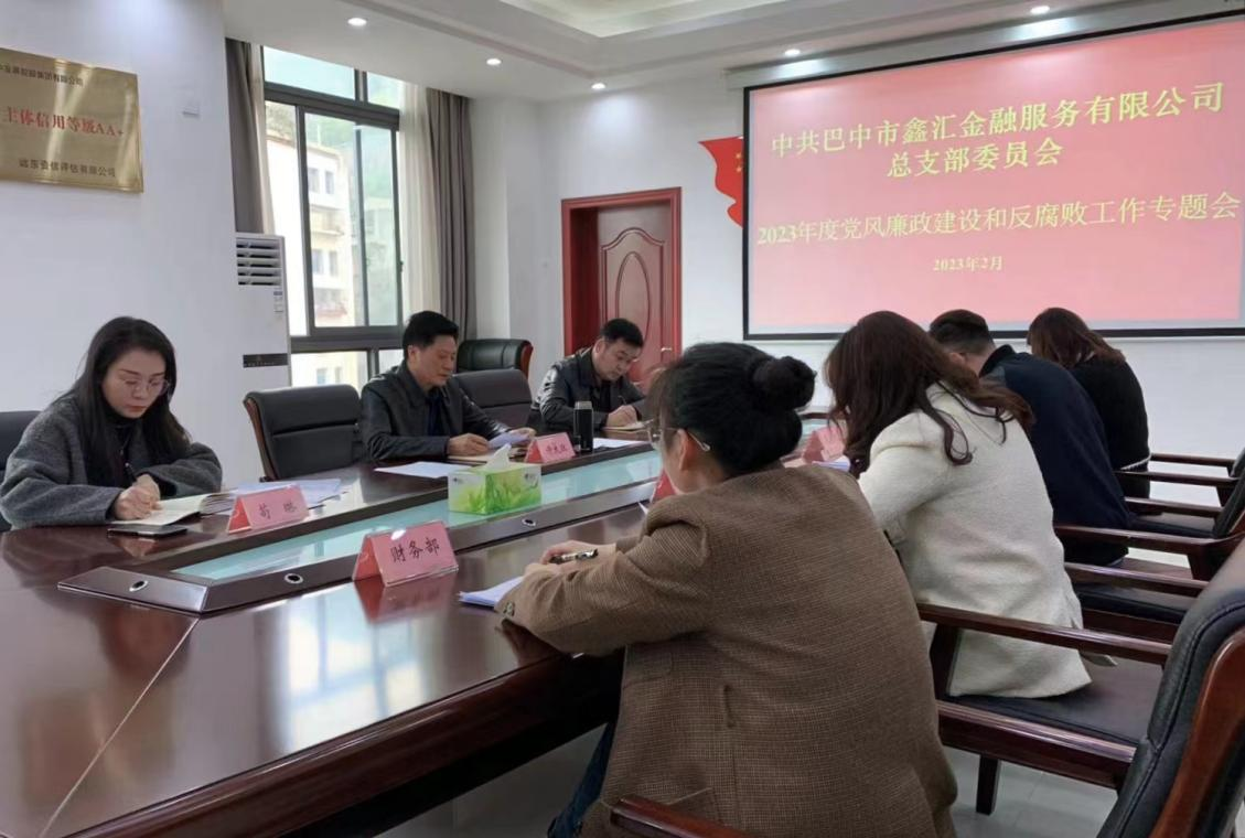 2月27日,中共巴中市鑫匯金融服務有限公司總支部委員會召開黨風廉政建設和反腐敗工作專題會議。公司黨總支書記、執(zhí)行董事、總經(jīng)理許大政主持會議并講話,公司全體職工參加會議。