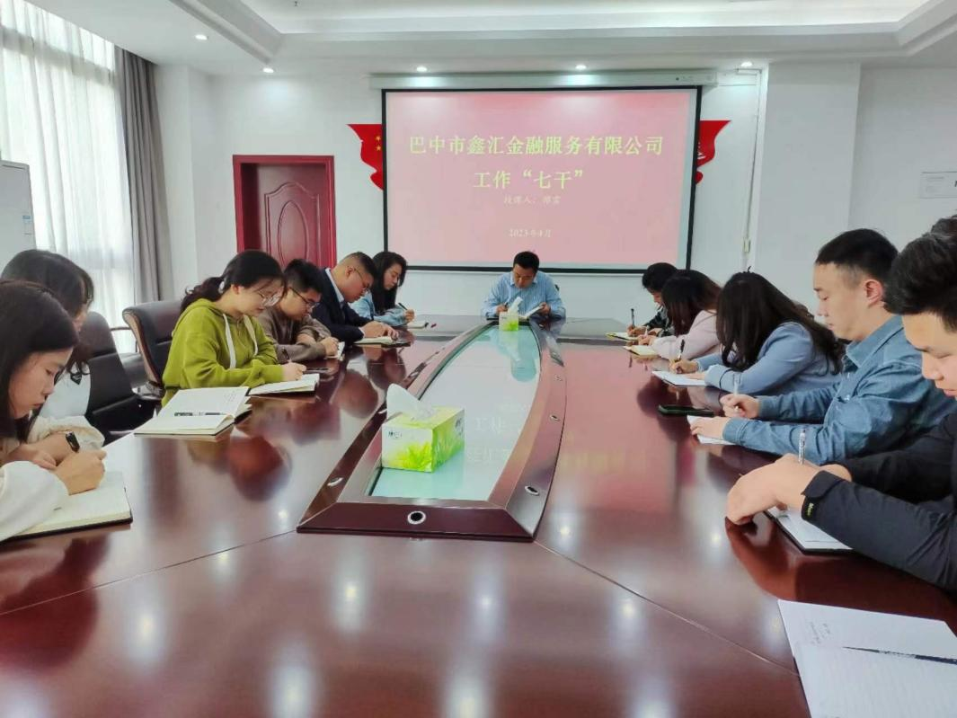 為加強(qiáng)擔(dān)當(dāng)意識(shí),增強(qiáng)干事精神,4月27日,巴中市鑫匯金融服務(wù)有限公司召開4月集中學(xué)習(xí)會(huì),會(huì)議由黨總支副書記、副總經(jīng)理邵雷主持并授課“工作七干”,全體職工參加會(huì)議。