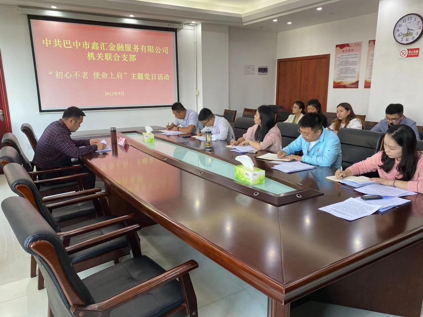 為進一步加強基層黨組織建設(shè),切實發(fā)揮黨員干部的先鋒模范作用,9月28日,中共巴中市鑫匯金融服務(wù)有限公司機關(guān)聯(lián)合支部開展“初心不老 使命上肩”主題活動,機關(guān)聯(lián)合支部全體黨員、公司全體職工參加。